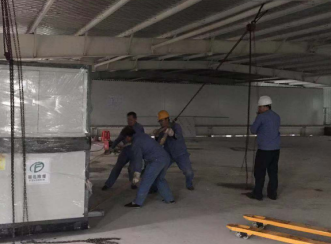 上圖是購買冠航手拉葫蘆的客戶在利用手拉葫蘆來吊裝移動(dòng)一個(gè)新進(jìn)的大型設(shè)備,操作人員將設(shè)備放到撬棍上,再把手拉葫蘆懸掛在工廠內(nèi)的橫梁上,再將葫蘆的下吊鉤鉤住設(shè)備,一名操作人員負(fù)責(zé)拉動(dòng)葫蘆的手拉鏈條,其他的操作人員在設(shè)備處負(fù)責(zé)拖拽重物,通過手拉葫蘆和人力的共同用力,設(shè)備被緩緩移動(dòng)到廠房?jī)?nèi)部。